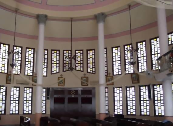 耶穌聖心堂以圓弧形牆面和歐式長型木質小閣彩色窗戶為特色,窗面採馬賽克拼貼,門廊簍空設計兼具通透感與美學。內部高敞空間由圓柱支撐圓頂,光線充足,營造莊嚴而安定的宗教氛圍。